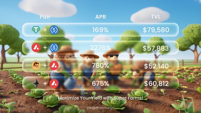 Super Farms are cooking on Pangolin. 🌱 Up to 2276% APR available. 🔥 Time to put your liquidity to work. 🔺 👉 http:/app.pangolin.exchange/po...