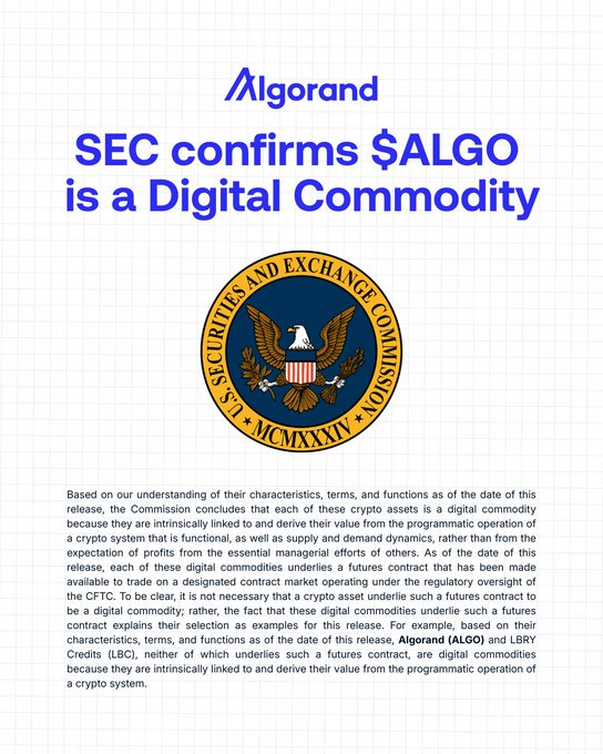 The @SECGov just confirmed it. $ALGO is a digital commodity. Not a security. Not a question. A fact.