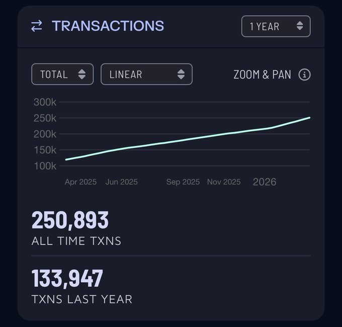 Prediction market transactions continue to climb, with a 5% increase to the previous week. Weekly Transactions: 1. @Polymarket - 26,260,409 (+6.64%) 2. @Kalshi - 20,041,183 (+7.02%) 3. @trylimitless - 408,550 (+43.78%) 4. @0xProbable - 308,191 (โ54.25%) 5. @alphaarcade -