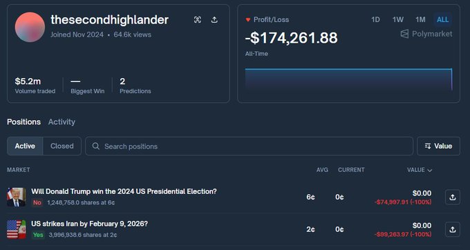Update: they are now 0 for 2 on their predictions and down -$174k. Sometimes it really is just a degen and not an insider. twitter.com/StackerSatoshi/sta...