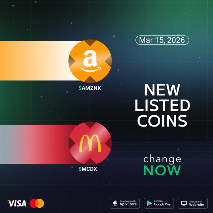 RWA listings just dropped on ChangeNOW 🍟📦 $AMZNX – tokenized stock, giving on‑chain exposure to @amazon via Solana tracker tokens; $MCDX – @McDonalds tokenized stock, bringing global fast‑food cashflow vibes on‑chain. Which stock do you swap into first?
