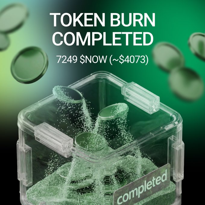 $NOW token burn completed. 7249 $NOW (~4073$) burned on Ethereum. On-chain proof → etherscan.io/tx/0x2c71fffa029a...… Fully in line with the whitepaper.