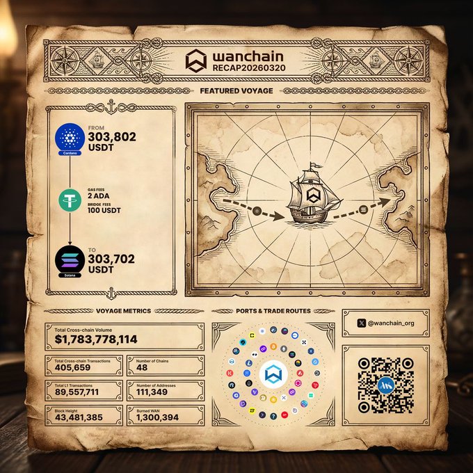 📊 WAN Ship Weekly Voyage Report 🧭 Engine Uptime: 8 years, 63 days of uninterrupted operation 💰 Trade Flow: Top-moved asset this week: $USDT 🌉 Trade Route of the Week: 303,802 USDT sailed from #Cardano → Solana