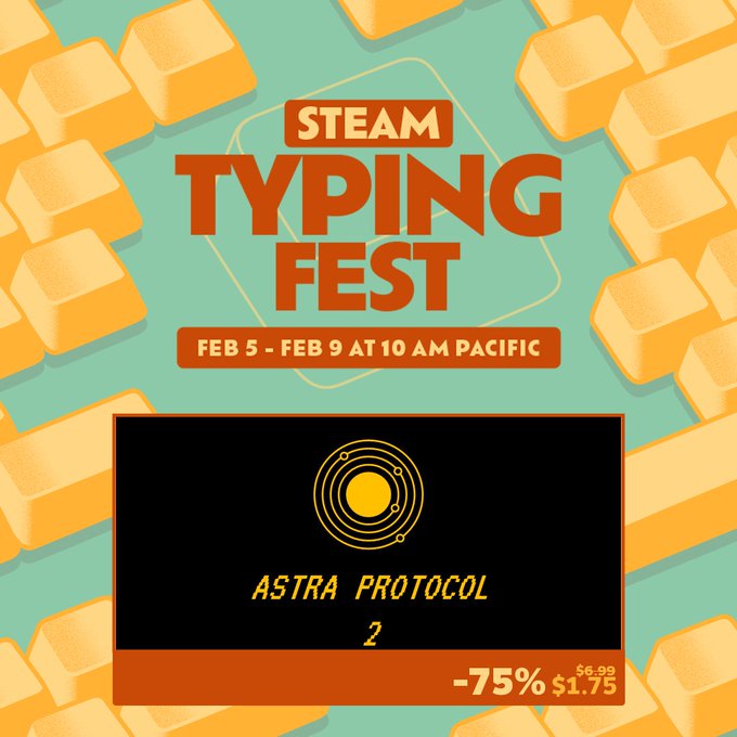 Ready to test your reflexes? Astra Protocol 2 is part of the Steam Typing Fest and it’s 75% off for a limited time. Suit up, type fast, survive. #SteamTypingFest