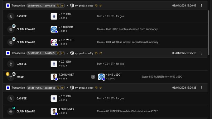 🏃 Ran enough last week to finish top 8 and earn 4 @runnerbased tokens + €0.52 in USDC/WETH from @runmoney_app That's about €0.88 total! I spend more on a postrun banana. 🐦But rotki tracks every cent and somehow that makes it feel like I'm winning!