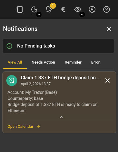 rotki has saved my ass multiple times with reminders and notifications of things I would otherwise forget. Here an example of a reminder to claim a bridging deposit from Base to Ethereum a week later. All that by processing locally saved data and leaking nothing to the cloud.
