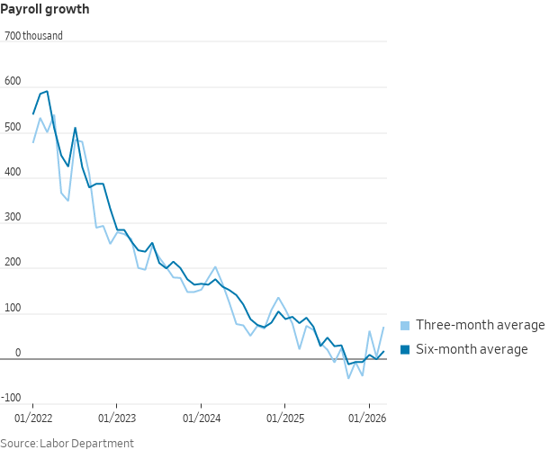 A falling unemployment rate alongside an unwind of the big drop in February suggests the labor market may be in better shape than it appeared, at least before the war hit—or, at a minimum, that it wasn't getting worse.