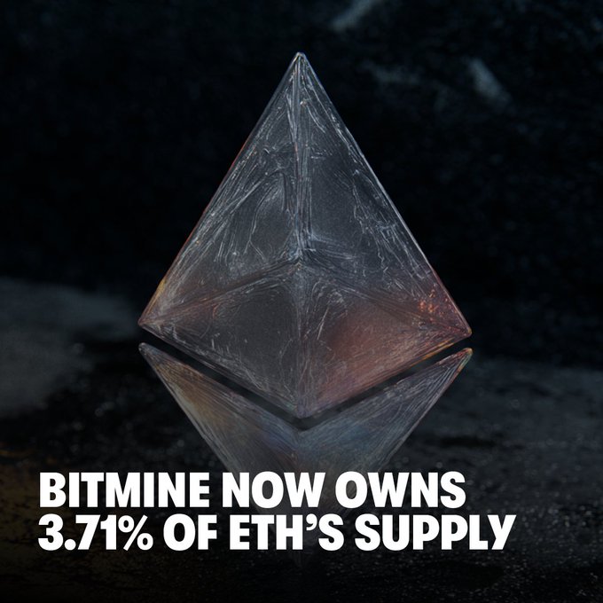 NEWS: BitMine announces another 50,928 ETH purchase. BitMine now holds 3.71% of ETH’s total supply.