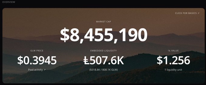 Glow has crossed a major threshold: 500,000 embedded liquidity. This means that at a price of $1 per GLW, there will be $500,000 USDC and 500,000 GLW tokens of protocol-guaranteed liquidity in the Uniswap pool. And this number strictly goes up over time.
