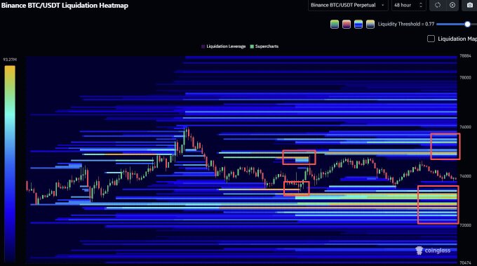 Expect a sweep below $72K to wipe the longs after then a violent reversal toward $76K+ to trap the late shorts all this within a week imo