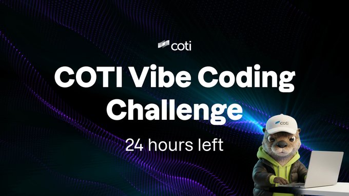 🚨 Final 24 hours. The COTI Vibe Code Challenge closes tomorrow. 1st place wins 50,000 $COTI + project launch support in the COTI ecosystem. This is it. Submit now 👉 http:/stay.coti.io/vibe-coding