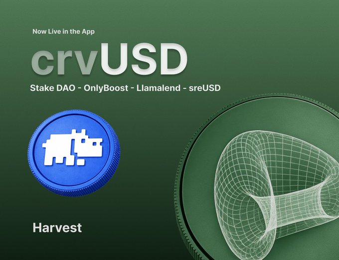 New: crvUSD Autocompounder sourcing yield from @ResupplyFi sreUSD market on @CurveFinance Llamalend. Supercharged by @StakeDAOHQ OnlyBoost ⚡ Accrued yield and rewards are converted into more crvUSD - now accessible via the Harvest App.