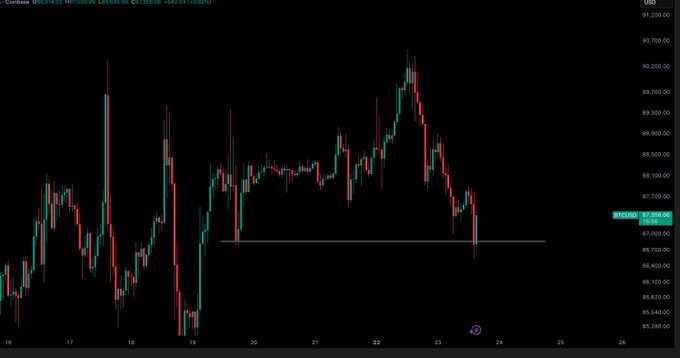 $BTC / $USD - Update Reacted from a key level, but we really want $88,000 reclaimed to show bulls have some more substance to this move