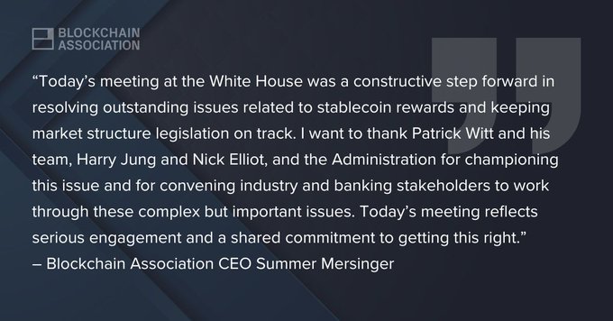 The following statement is attributed to Blockchain Association CEO @SummerMersinger following today's White House meeting: