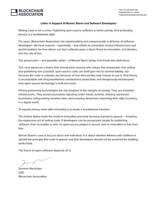 This isn’t just about one defendant. It’s about whether America will keep its commitment to open innovation and whether developers can build lawful, permissionless software without fear of prosecution. We’re proud to stand with Roman and software developers everywhere.