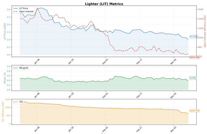 Since TGE, Lighter has struggled to retain open interest, and the price of $LIT clearly reflects this.