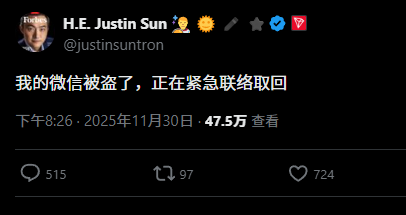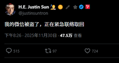 Previously, Sun Ge (@justinsuntron) had his WeChat account hacked.