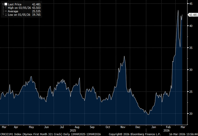 Someone in the WTI futures market appears to have concluded that the Iran war ended yesterday, while forgetting to inform the refined product market which continues to tighten. WTI is down 3.6%, Brent off just 1.1% lifting the WTI discount to around $8 per barrel, while the 3-2-1 crack spread is heading higher
