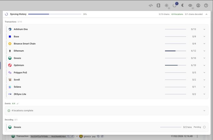 The last @rotkiapp release has added a much more comprehensive progress bar for syncing history so that you never wonder what rotki is doing at any moment You will now know exactly what chain and for what data is being queried while rotki is syncing Use rotki, stay up to date!