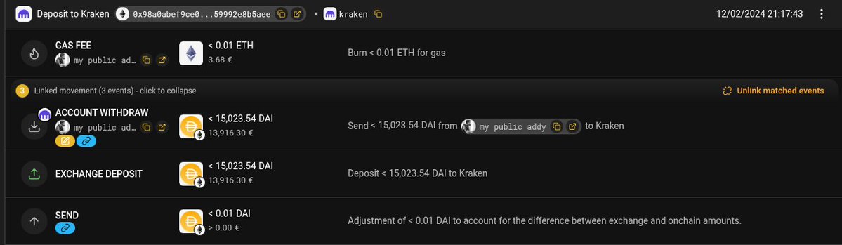 You deserve to be able to trace ur history and make everything add up. Use @rotkiapp premium and reconcile between onchain and CEX transactions. rotki even automatically accounts for the dust difference between sent and credited amount 🤯 Do ur future self a favor. Buy premium