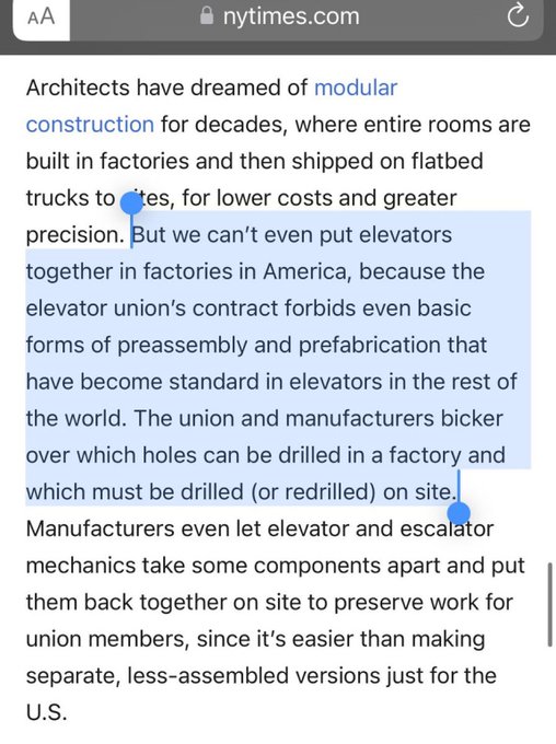 Reminder that the elevator union's contract explicitly prohibits preassembly and prefabrication in factories: twitter.com/AlecStapp/status/2...