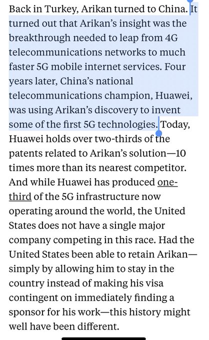 Reminder that the United States could have been the world leader in 5G technology instead of China if we had just given *one guy* a green card when he needed one.