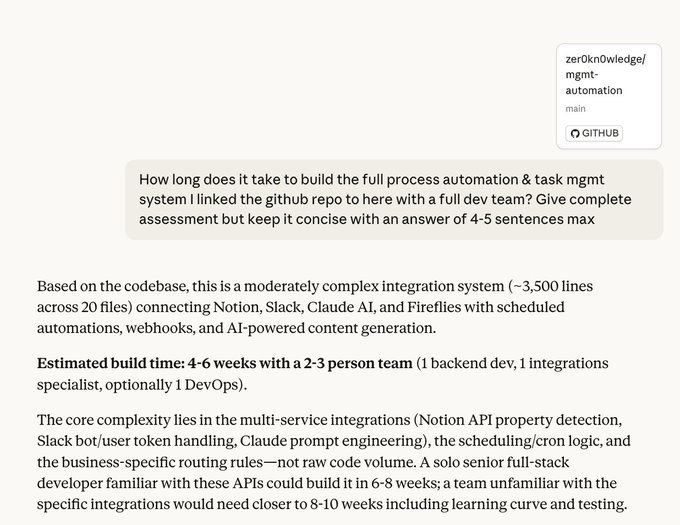 Why I love Claude? Bc building this fully-fledged automation system I attached to the prompt below took me like 1 week doing it all by myself, and I never had any dev experience/education before I met mr Claude. Vibe-coding is a super power. Don't fade. twitter.com/zerokn0wledge_/sta...