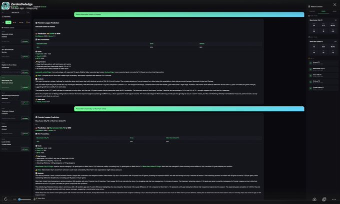 More reasons to love @AnthropicAI and Claude: I got a few free trials on football data provider websites two weeks ago, spent a few hours on a Sunday afternoon vibe-coding, and hooked up Claude Opus to those data sources. Built a smol frontend to ask my AI analyst to predict twitter.com/zerokn0wledge_/sta...