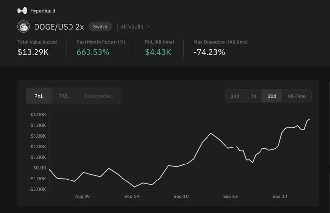 1/ While the market dipped, our Doge Vault flipped short automatically. A fully directional strategy that switches long or short on a binary signal.