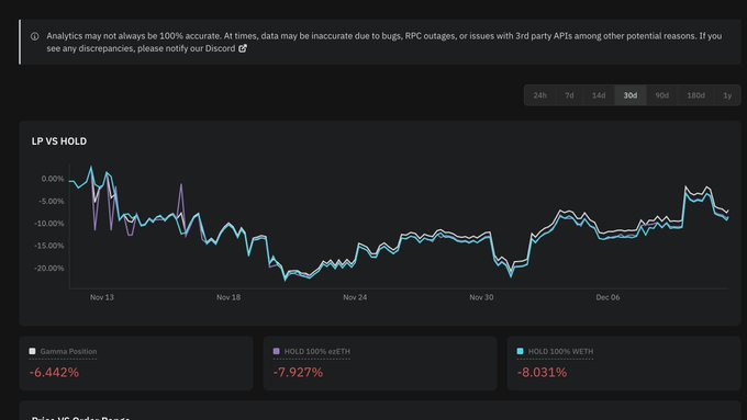 Our $EZETH – $WETH pair on @CamelotDEX quietly outperformed simply holding both assets by 1.5% last month. Low risk, steady gains, exactly how yield should be. ✈️ Deposit here 👇 app.gamma.xyz/vault/camelot/ar...…