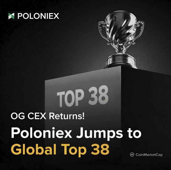 🚀 Big Move for #Poloniex We've climbed to #38 on CoinMarketCap Rankings. 🏆 The World’s First Zero-Fee Trading Exchange.✨ Momentum is building.