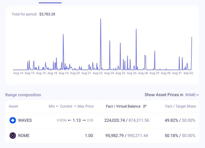RANGE ROME–WAVES, since August 13, has brought liquidity providers over $3,700 💰 A real example of how RANGES generate sustainable income without the Ponzi chase. Create your own RANGE 👉 puzzleswap.org/ranges
