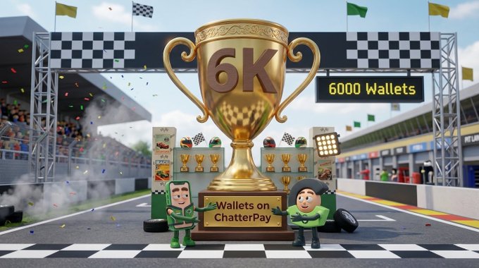 6,000 wallets created on ChatterPay 🏆 We celebrated 5,000 not long ago. Now we're here already. Every milestone has felt big. Every one has come faster than the last. We don't take that lightly, and we're not stopping here. More coming soon 🏎️