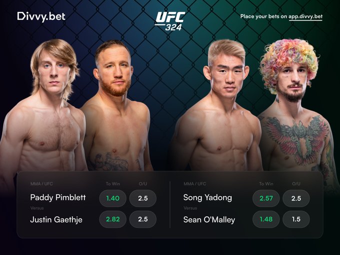 UFC 324; Gaethje 🆚 Pimblett UFC's paramount+ era kicks off on the 24th of Jan 2026 with a card packed with star power, title implications, and potential fireworks, headlined by an interim lightweight strap on the line. Here is a fight-by-fight breakdown of the main card 🧵👇