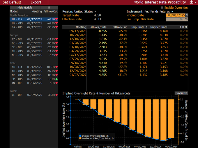 Traders are pricing in more than a 65% chance of a September rate cut, one that's fully priced in by October. This was closer to 45% for September prior to the jobs report -- which not only was weaker than the average of Wall Street estimates, but also showed whopping downward revisions, 258k from the past two months.