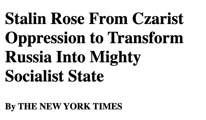 NYT admiration of anti-Western dictators has a long history! Did Duranty write this obit of Stalin? Eight years removed from any sentimental WWII "Uncle Joe" propaganda, and still. twitter.com/Kasparov63/status/...