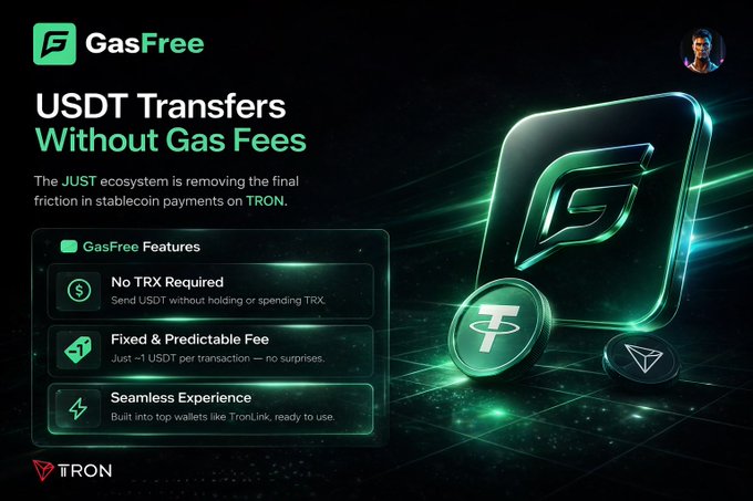Most users don’t get stuck on DeFi. They get stuck on the first transaction. “Why do I need another token just to send USDT?” #GasFree makes that question disappear. USDT transfers on TRON, now reduced to one simple action. twitter.com/DeFi_JUST/status/2...