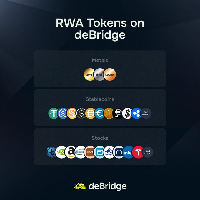 From gold to stocks, from stablecoins to a wider range of real-world assets, deBridge (@deBridge_CN) already supports over 100 RWA assets, and is propelling this process to a new stage, allowing more users to discover, trade, and liquidate value more freely on-chain. On DeBridge, users can not only discover high-quality assets more easily, but also participate in trading, cross-chain transfers, and value management with lower friction. Whether traditional financial assets or emerging on-chain asset forms, they are all being recombined and priced within the same open network, forming a more open, transparent, and efficient on-chain financial system. (2024111120231) (2024111120232)
