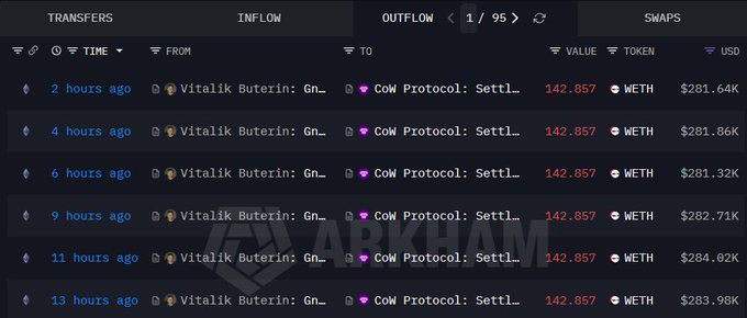 Vitalik has sold $1,696,000 in $ETH today.
