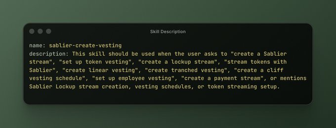 Our new Claude Code skill lets you deploy Sablier Lockup streams on 30+ EVM chains — directly from the command line. → Multiple vesting shapes → Single or batch creation → Built-in safety checks Simply run /sablier-create-vesting, and the agent handles the rest.
