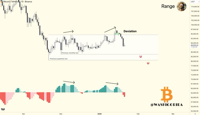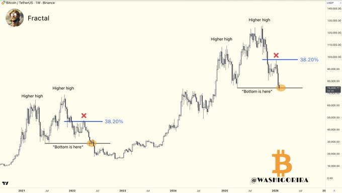 #Bitcoin After a weekly close below $74.5k, BTC could revisit $60k first, with $49k as the next liquidity zone.
