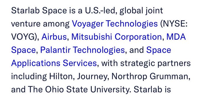 Starlab closed a credit facility today. It will replace the International Space Station as it comes out of orbit in a few years. $VOYG owns 67% of Starlab.🚀 There’s a Critical Design Review expected any day now (📈 catalyst). Other Starlab partners include Airbus and Palantir.