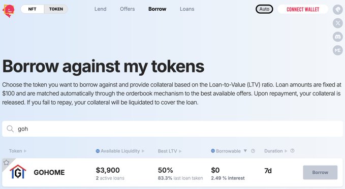 Proud to announce that there are now 2 venues where you can borrow USDT/USDC while using $GOHOME as collateral, and more to come: sharky.fi/token/borrow from .@SharkyFi and blynex.com/deposit_loan from .@Blynexex the ecosystem is growing, there is more exciting stuff to