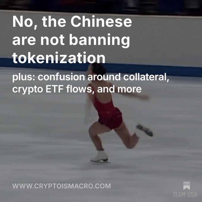 Hi all! Today’s Crypto is Macro Now inadvertently focused on two bits of mis-reporting I’ve seen over the past few days. No, China is *not* banning tokenization and stablecoins. And no, the CFTC did *not* just allow stablecoins as collateral. Also: BTC price vs ETF flows.