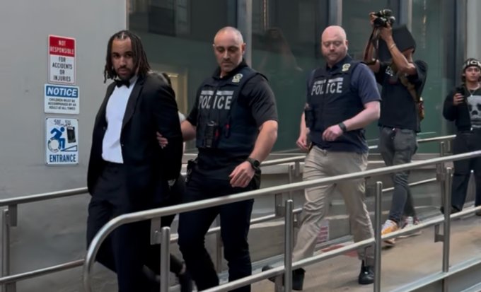 Multiple NYPD officer arrest, an undercover officer, and doing it publicly in the middle of his big night...all for a class B misdemeanor?? Absolutely disgusting twitter.com/andrewjiang/status...