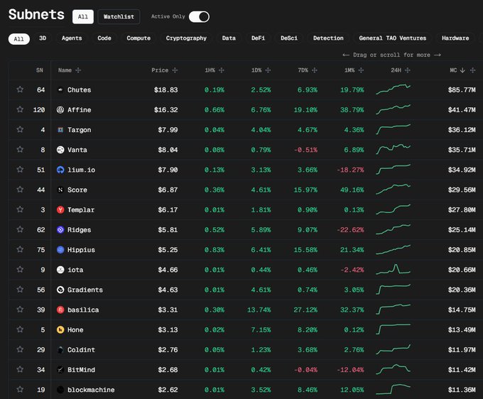 There is a raging bull market happening with Bittensor $TAO subnets right now 🐂
