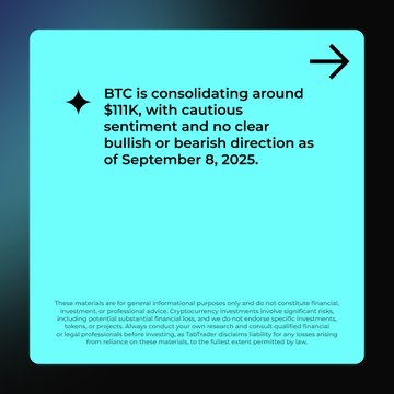1/ #TabRecap | BTC in Consolidation Mode 🧵 📊 BTC is hovering around $111K, stuck between $110.5K support and $112K resistance ⚖️ Break either way sets tone: $107K–$109K if down, $115K–$118K if up 📰 Traders are cautious with September seasonality and Fed updates in play