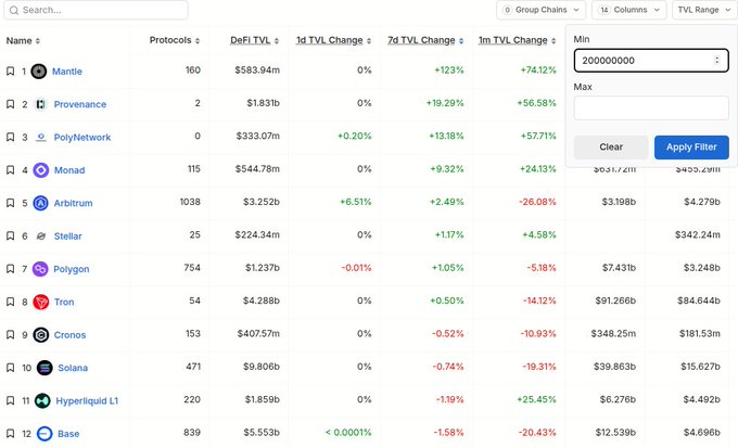 Mantle dominating the TVL battle among major chains this week due to Aave deployment + incentives...
