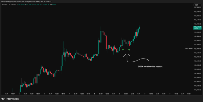 Fakeouts donโt happen twice ๐ Yesterday, I said: โA close above $123K signals acceptance and a true breakout.โ Now weโre at ATH. ๐บ Follow the YouTube channel for regular video breakdowns. twitter.com/JA_Maartun/status/...