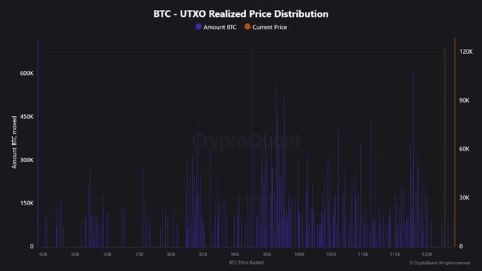 Almost no on-chain resistance remains at these levels ๐ Bitcoin is within striking distance of its all-time high, with little historical supply overhead to slow it down.